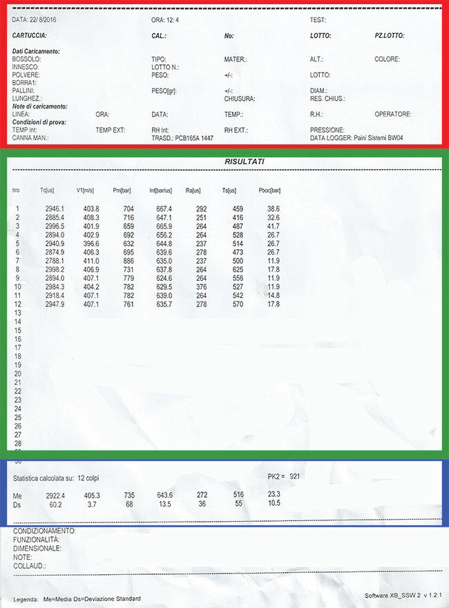E' questo il settore ove vengono automaticamente registrati i dati di ogni singola munizione sparata. I dati sono riferiti a: